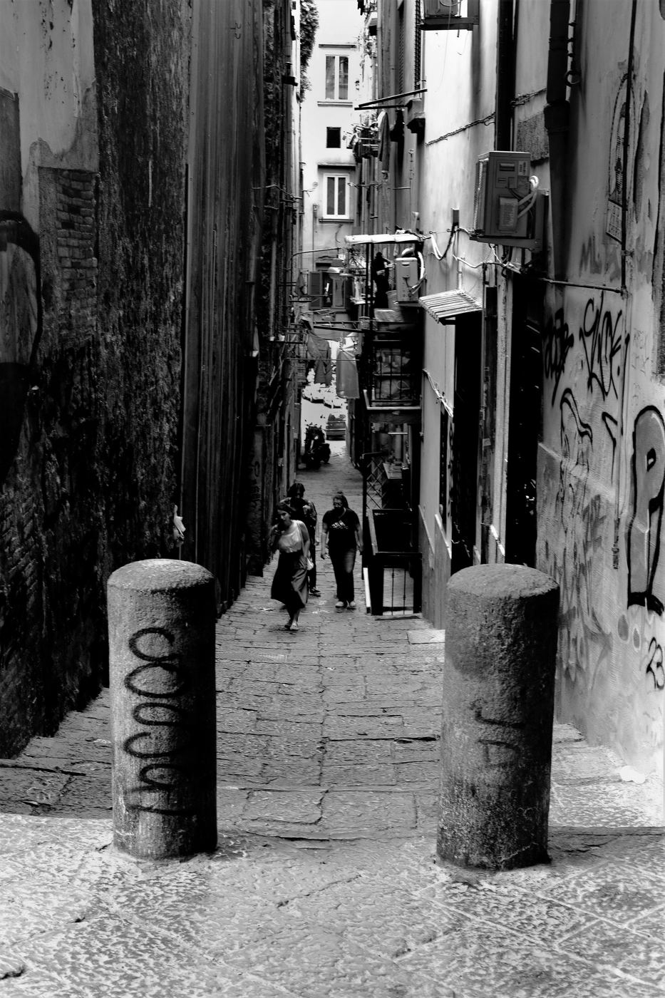 Buonasera Ricky e grazie per l'interesse per questa foto. Non era una questione di impazienza o di scarsa attesa; anzi, quasi sempre faccio più di uno scatto per lo stesso soggetto; ma per questo genere di foto faccio sempre attenzione a non disturbare le persone che posso inquadrare o che desidero riprendere nella scena: mentre gli uomini in fondo parlavano tra loro e non prestavano attenzione, la donna mi ha dato la sensazione di non gradire molto e prima di farla avvicinare ulteriormente ho scattato facendo capire che ero interessato al vicolo e non a lei.