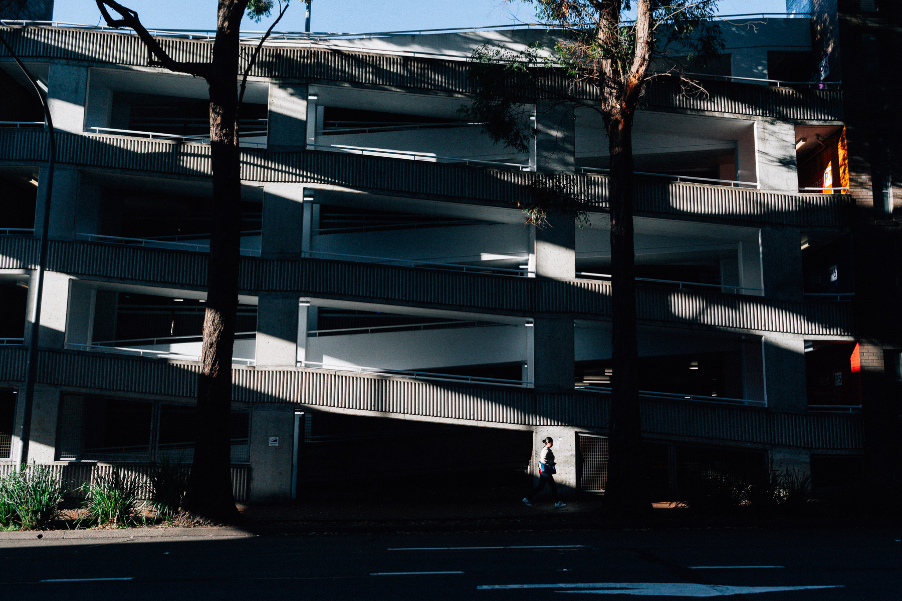 Mi piace la corrispondenza tra le diagonali del palazzo e quelle delle ombre, è un insieme intrigante, anche se i tanti elementi presenti rendono la scena un po’ confusionaria… Avrei optato per un taglio drastico, focalizzando l’attenzione sulle diagonali centrali e sulla ragazza nel tratto illuminato… A mio avviso e gusto, ovviamente