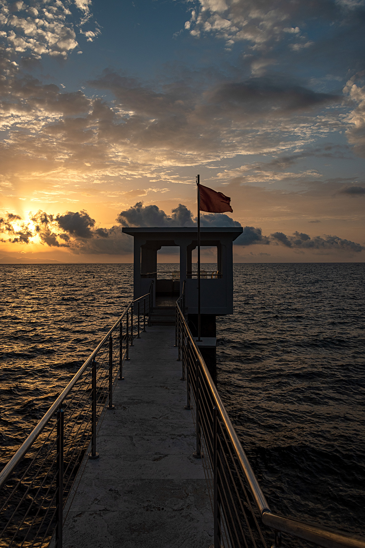 Un cielo spettacolare, ricco e dinamico, un mare su cui raggi dorati si sciolgono tremolanti. Una composizione piacevole e azzeccata. La luce beh, è ciò che più caratterizza questa piacevole immagine. Forse un pizzico in più di luminosità sulla struttura, soprattutto al suo interno, ci sarebbe stata. Ciao