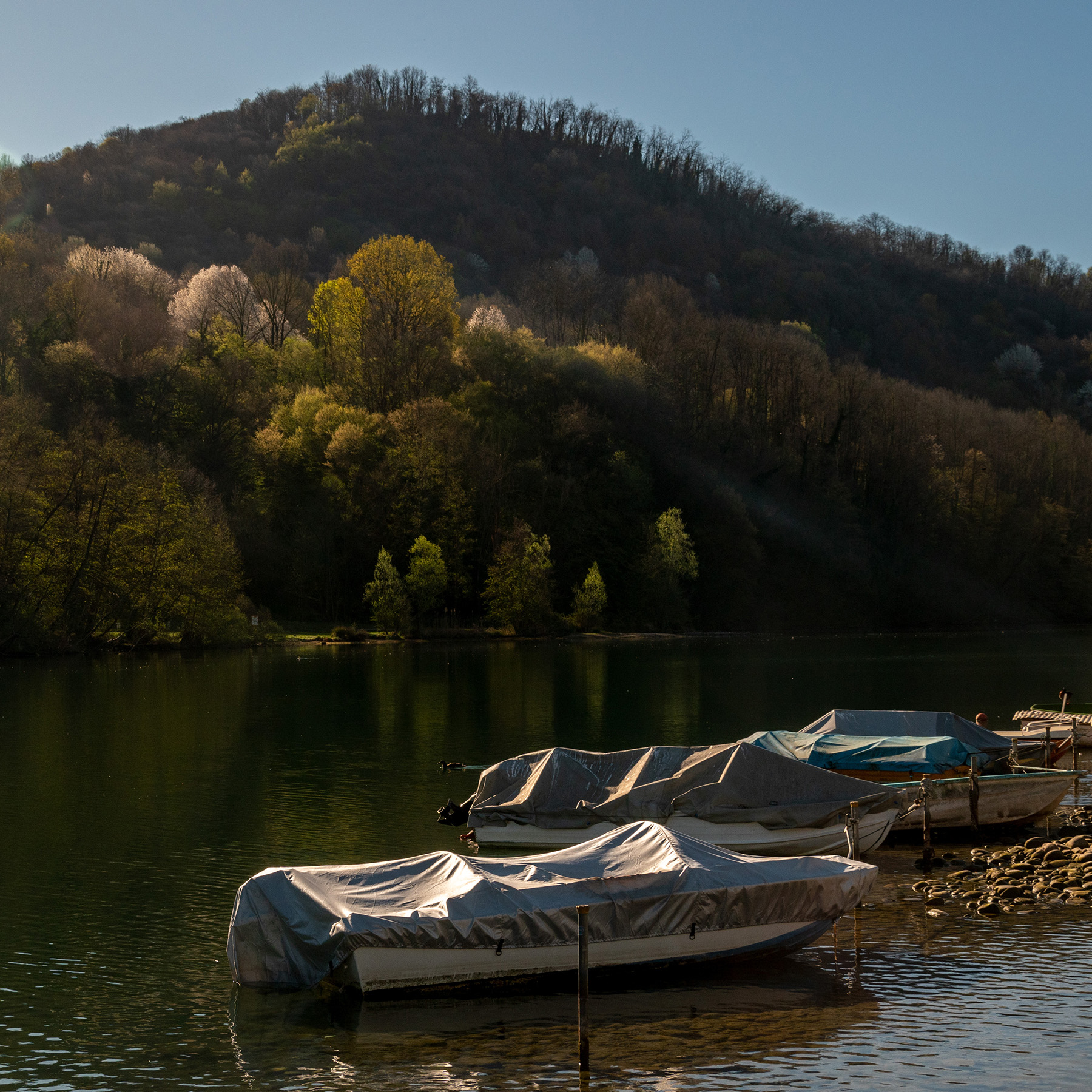 Bella luce radente e ottima composizione: c'è un bell'incrocio di linee tra la diagonale che passa lungo la chioma degli alberi illuminati a mezza altezza sulla collina, e quella che segue la disposizione "scalata" delle imbarcazioni (spero di essermi spiegato in italiese Very Happy ). Sul mio monitor è forse un pelino sottoesposta. Bella prova.