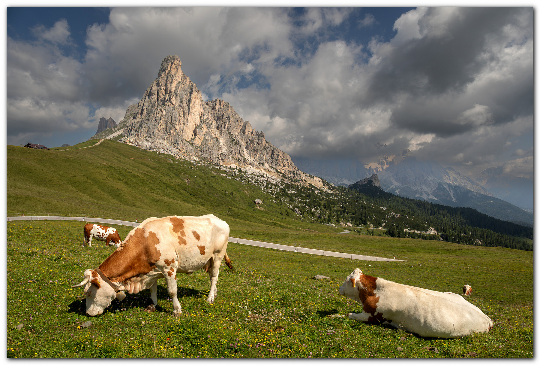 Ti sei divertito con le foto quel giorno al Passo Giau! Bella anche questa Ivo. Le tre vacche placide sul prato sorvegliate dalla solita poderosa Gusela. Buono il momento della strada senza mezzi a motore che transitano. Ciao, Francesco _________________ Fotocamere Olympus OMD e PEN, Panasonic G3. Software GIMP