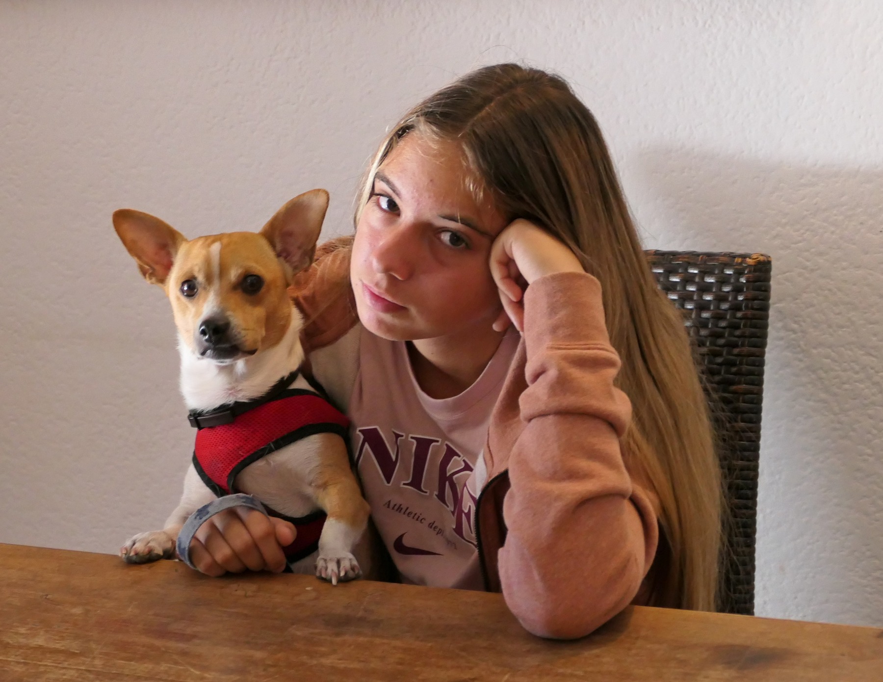 | Il cagnolino strappa davvero un sorriso come sembra posare incuriosito e forse un po' spaventato ,  impegnandosi per esser all'altezza della prova! Nell'aria rilassata e quasi un pizzico infastidita  per il disturbo, di lei, si legge tutta la naturalezza del momento.   _________________