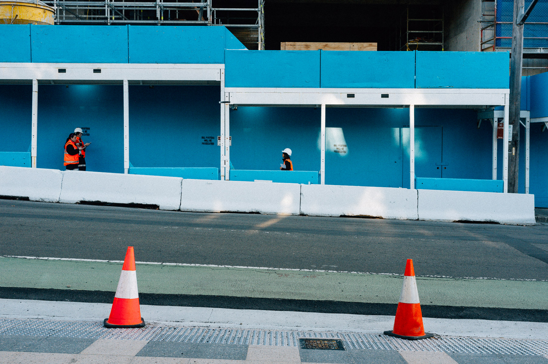 Ottima. L'evidente richiamo cromatico tra i lavoratori e i birilli impreziosisce l'immagine magistralmente composta e ne danno il giusto equilibrio.