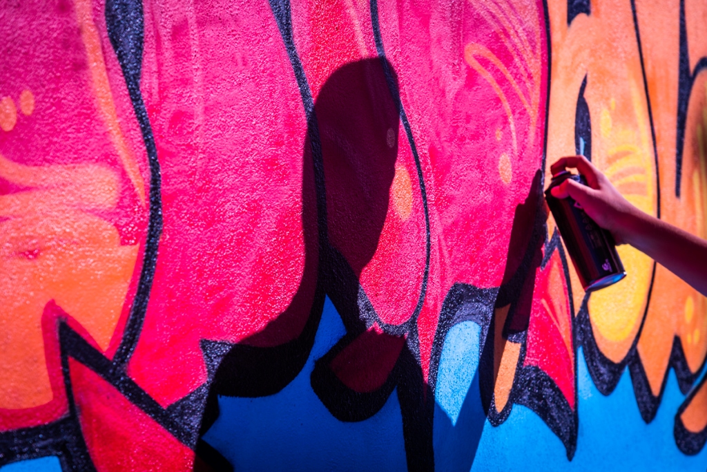 Lo scatto è coraggioso, i colori intensi del murale rischiavano di mettere in secondo piano l'ombra che è il fulcro dell'immagine. Fortunatamente essa è molto netta e l'effetto rimane.