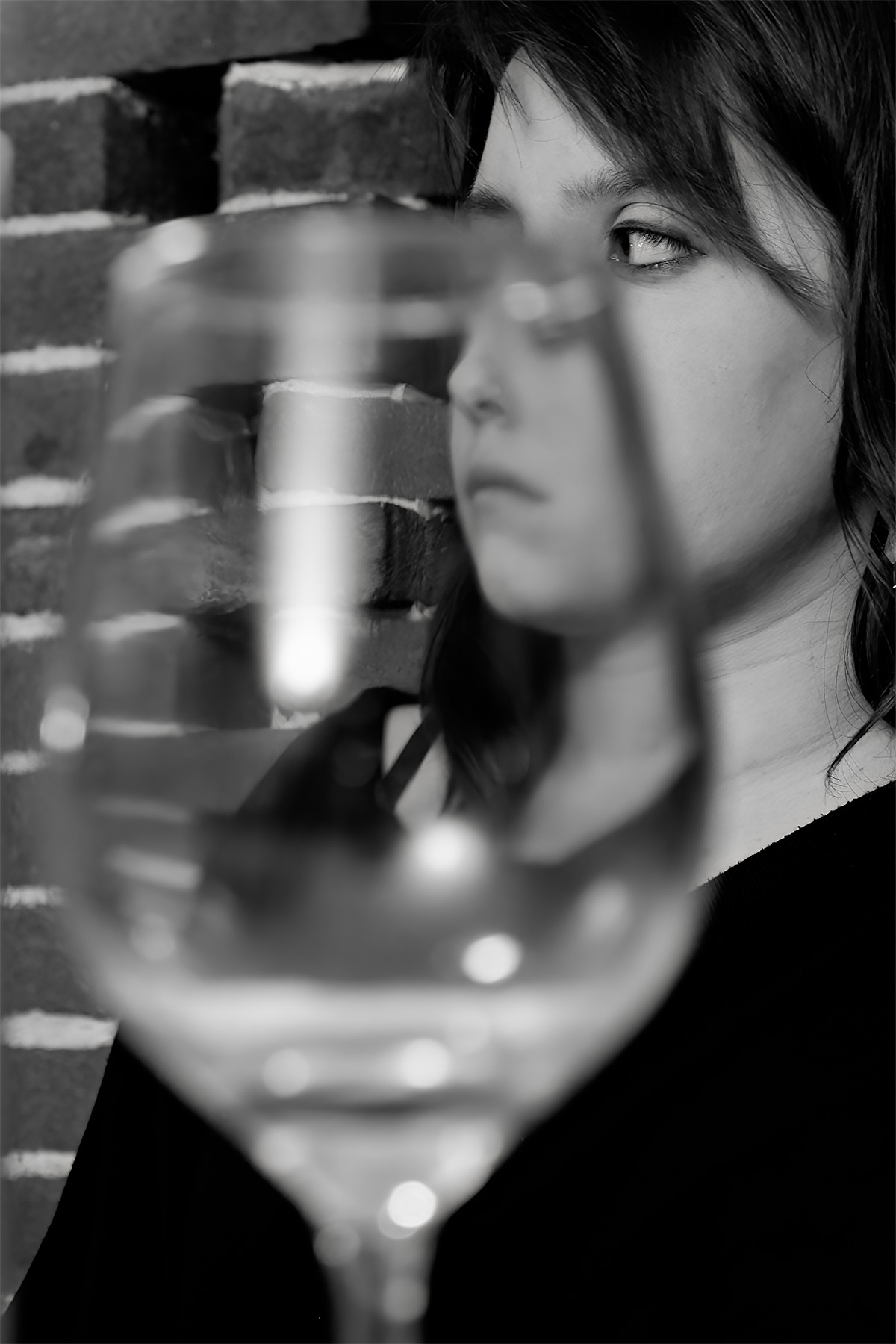 Il biancoenero non è male, ma questa sovrapposizione del bicchiere deforma parecchio il viso della persona, e il taglio è troppo stretto.
