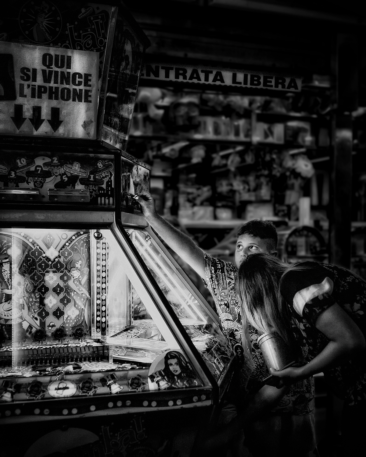 L'immagine e' forte e chiara, lo sguardo del ragazzino unito al gesto d'inserire la moneta fanno la foto, per cui secondo me non c'e' motivo di forzare la mano con una conversione che distrae dal fulcro della fotografia.