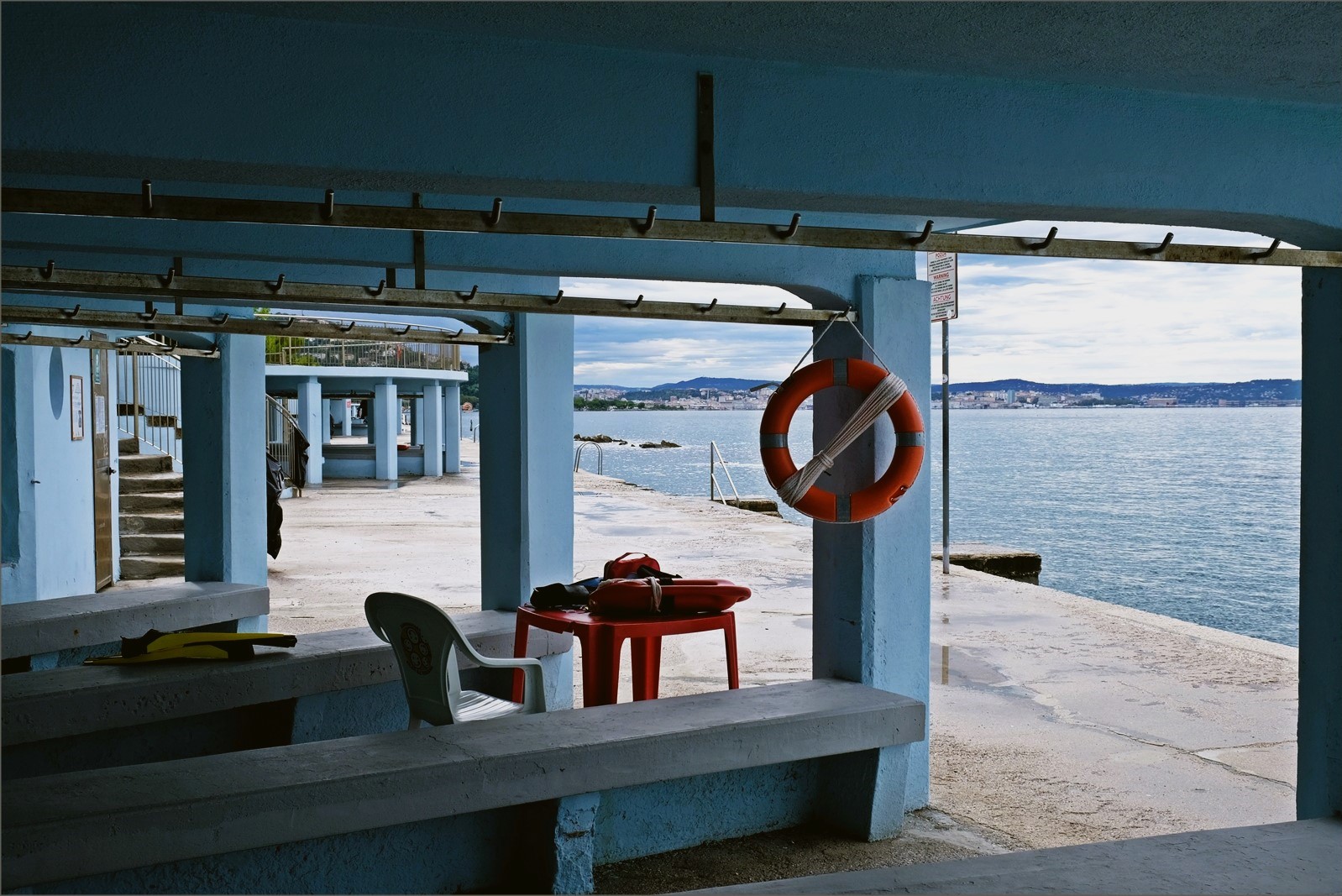 Tutto è fermo, ordinato, domina il silenzio, anche il cielo e il mare sembrano accompagnare questa quiete.