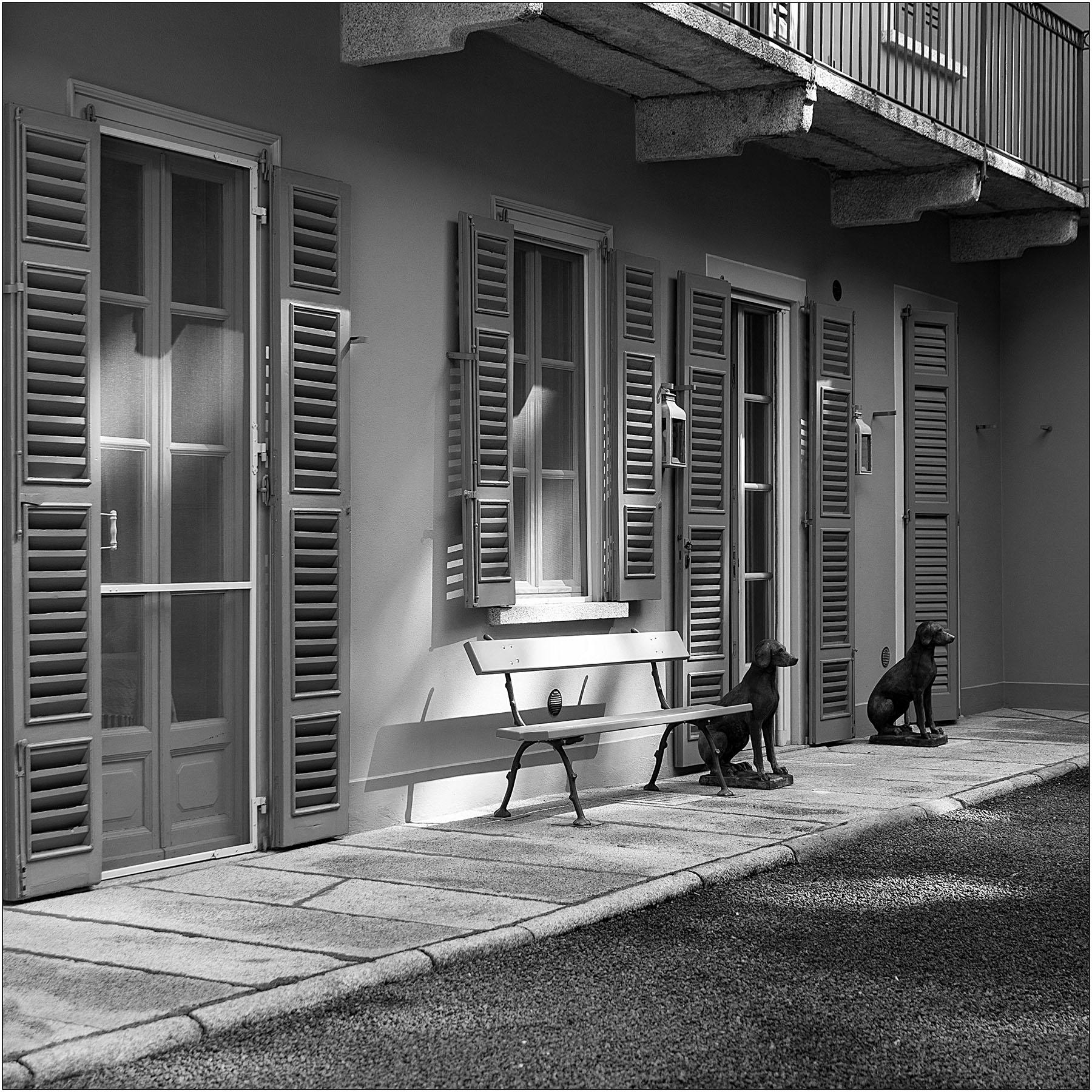 Simpatico insieme Belle le linearità delle persiane e della ringhiera, buona la luce e pulita la composizione Da un soggetto ordinario una buona immagine