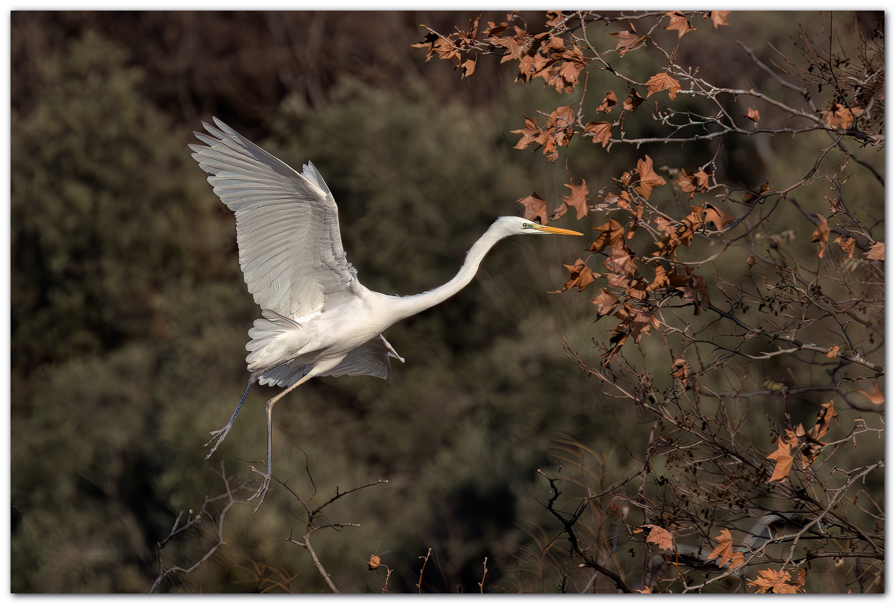 Il bianco si staglia molto bene sullo sfondo mentre i rami a dx danno un senso di profondità/tridimensionalità.