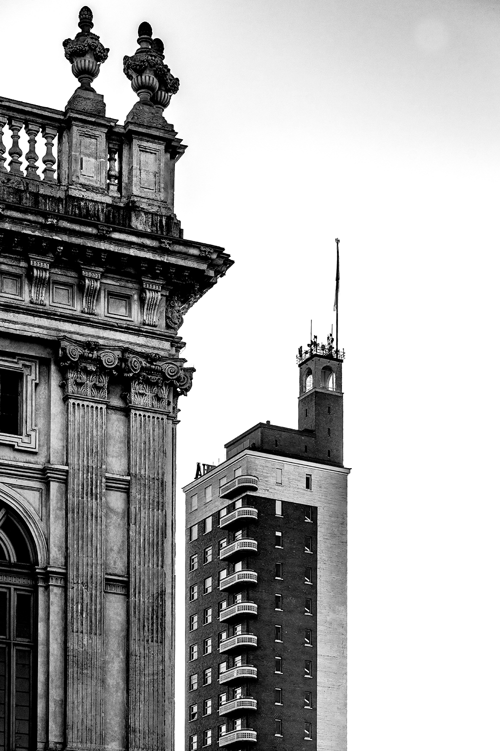 Con il taglio del palazzo d'epoca a sx gli hai dato una estensione verticale che emula quello moderno alla sua dx.