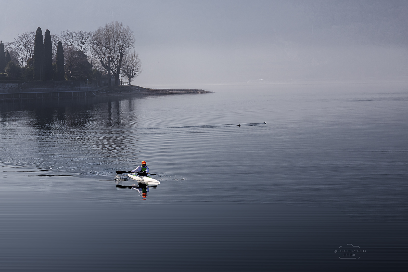 Questo specchio d'acqua è un piccolo lunapark fotografico, liscio e quieto o vibrante e increspato, regala riflessi, dinamismo, senso di indefinito nel suo perdersi nel cielo. E' un ' immagine che trovo estremamente piacevole , forse un pelo sbilanciata a sx, ma il movimento verso dx degli uccelli compensa. Ottima anche l'atmosfera che riesci a restituire, questa dominante fredda che rende tutto più ovattato, facendo esplodere la figura del canoista dai colori sgargianti e dei suoi movimenti. Ho la sensazione , ma potrei sbagliare, che ci sia una leggera pendenza e forse proverei a ridurre un po' il rumore nel cielo. Bella  _________________