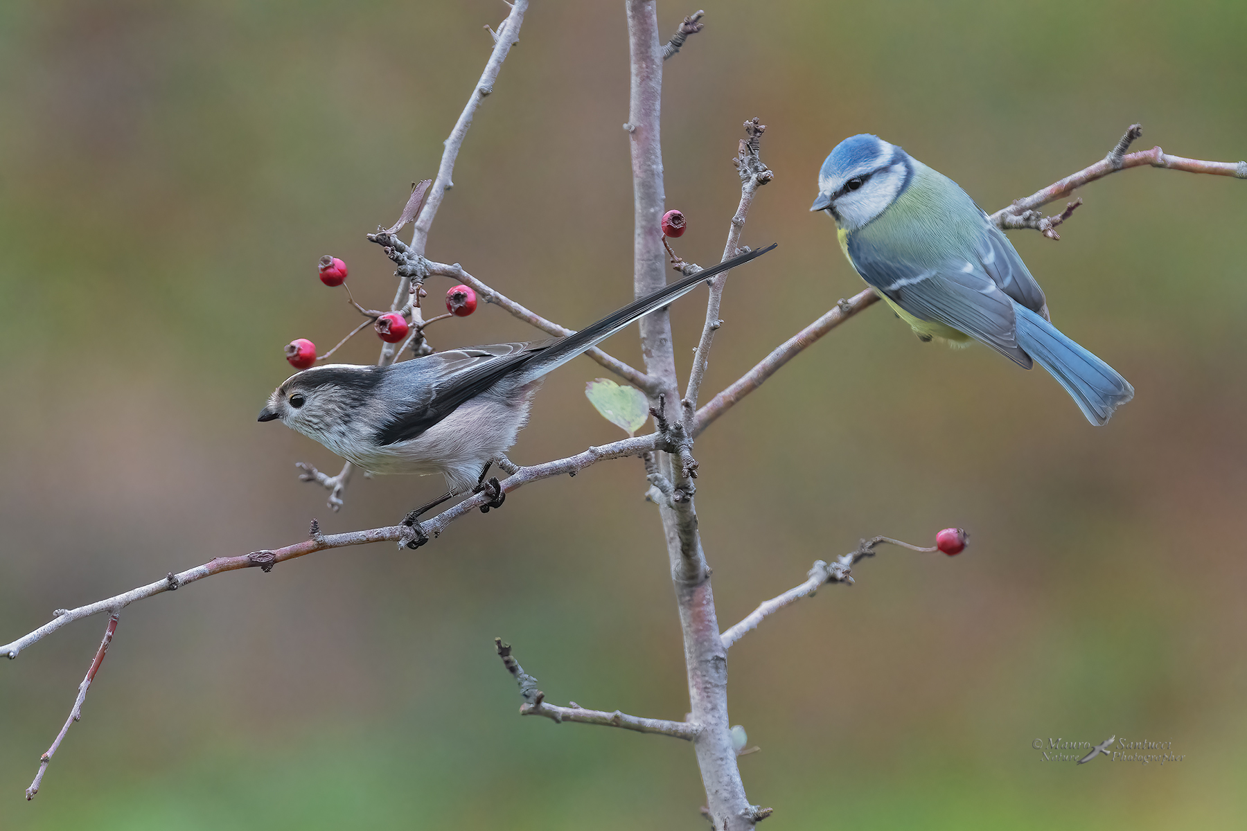 | Bel colpo due in una volta. Se pur il groviglio di rami crei un certo "disordine", la posa dei volatili sul ramo in diagonale le da dinamismo e le bacche rosse vivacità di colore.