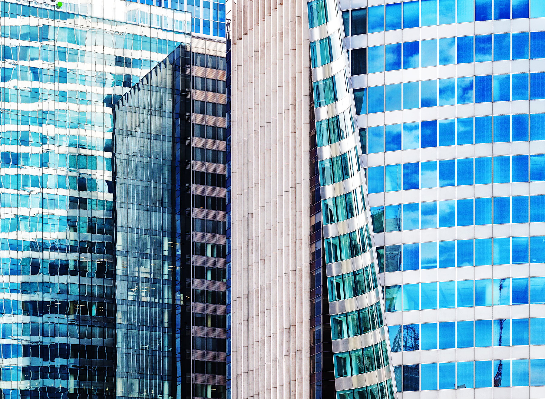 Particolare quella parte inclinata e quasi ricurva su se stessa. Hai tratto una bella serie da questi edifici. Clonerei solamente il punto verde in alto a sinistra.