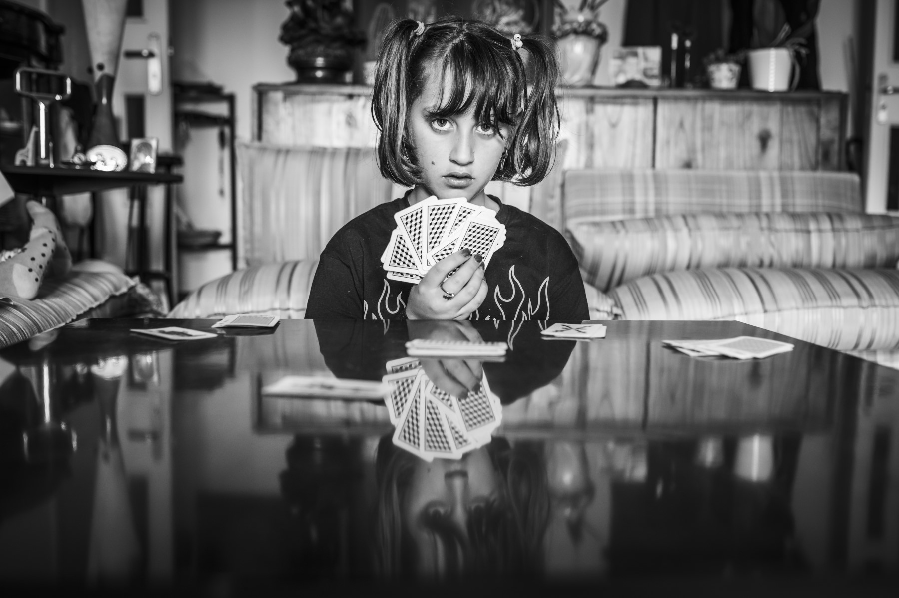 Il riflesso sul piano del tavolo è un motivo in più di riuscita dello scatto.