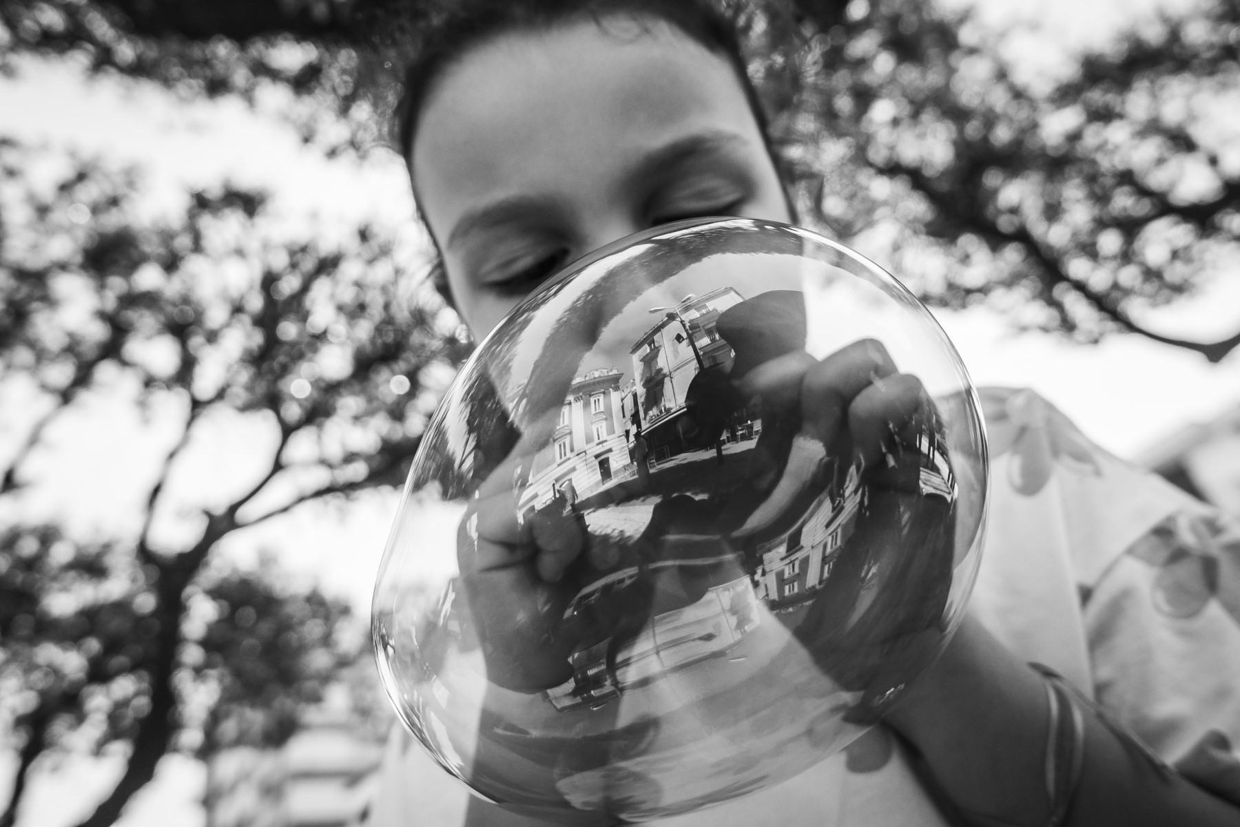 Mi piace molto. Il fuoco circoscritto alla bolla e al suo contenuto, ci dà la sensazione che la ragazzina abbia catturato il mondo, come per magia. Molto interessante  |
