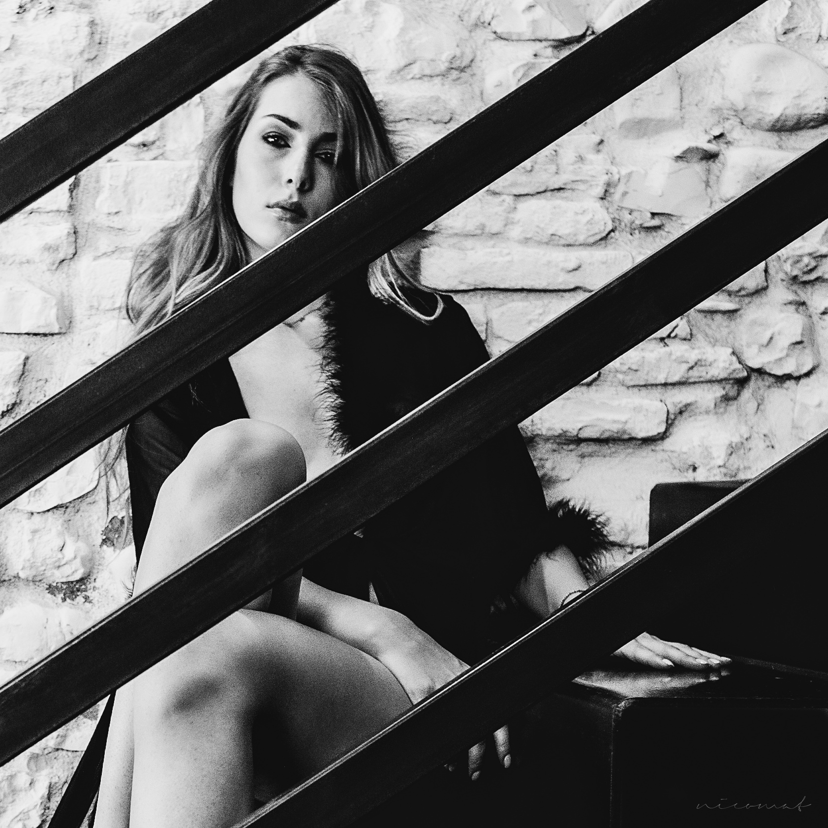 Molto bella l'espressione colta, mi piace l'inclinazione della testa che sembra assecondare le barre diagonali. Il B/W è molto contrastato, non so, forse avrei provato qualcosa di meno spinto. Nel complesso una proposta interessante. Un caro saluto  _________________