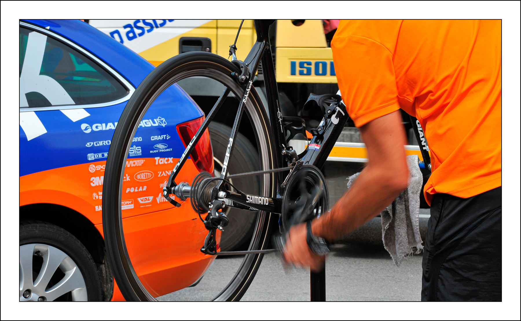| Immagini di un dietro le quinte che di solito è difficile vedere se non in una sede di tappa del Giro d'Italia. |