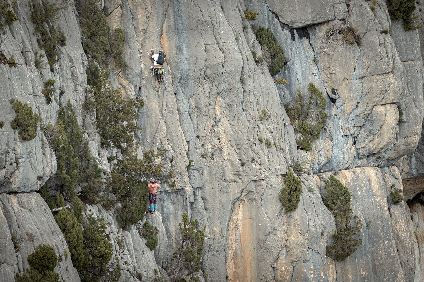 Fa un certo effetto vedere questi alpinisti su pareti a strapiombo. E meno male che non si vede il fondo altrimenti l'effetto sarebbe stato ancor maggiore.