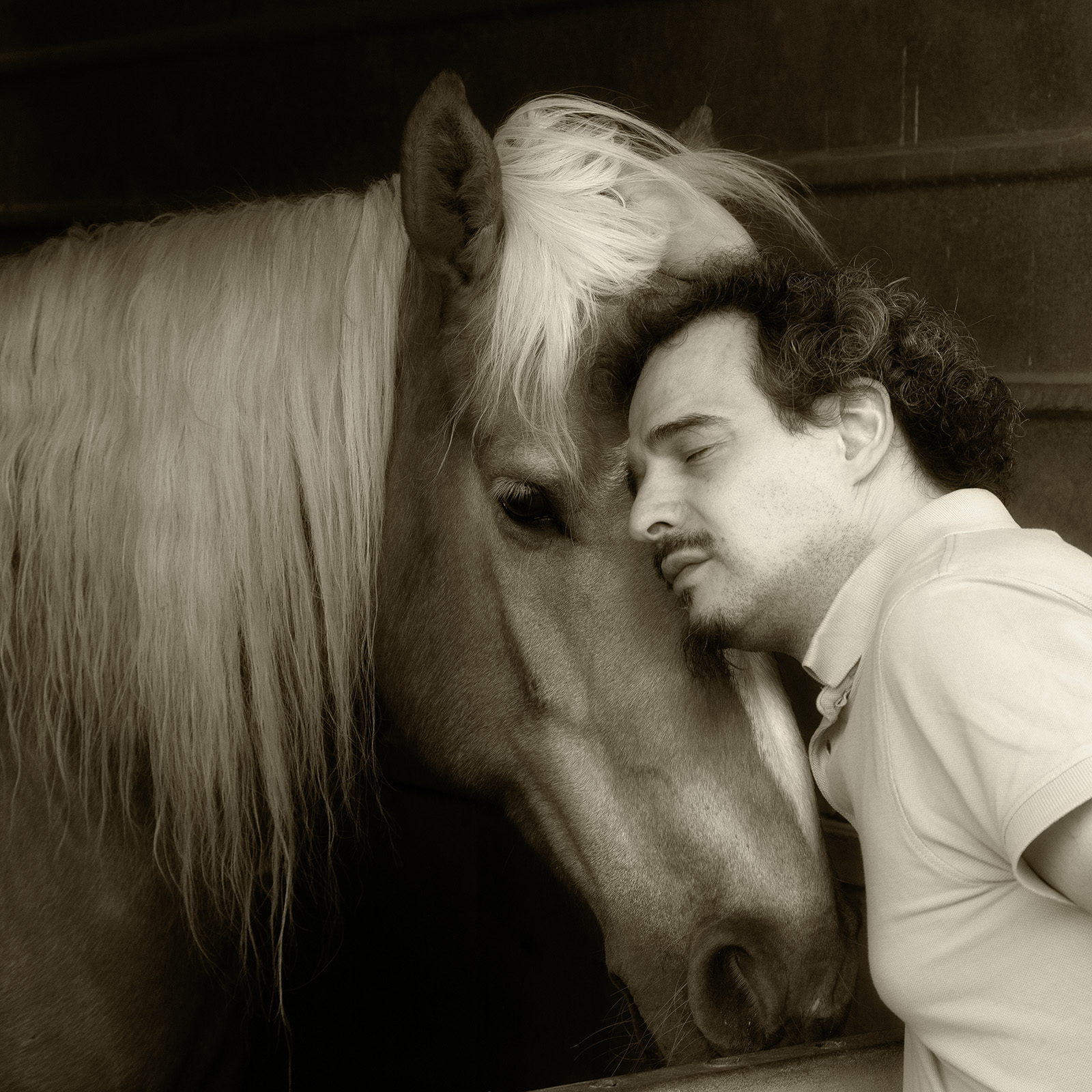 L'espressione mesta e malinconica del bel cavallo si accompagna ad una altrettanto sentita dell'uomo, dolce e profonda. Un'immagine che lascia riflettere molto sui sentimenti belli e veri che possono sorgere fra gli umani e gli animali, spesso non viziati da niente al contrario di quelli fra uomini.