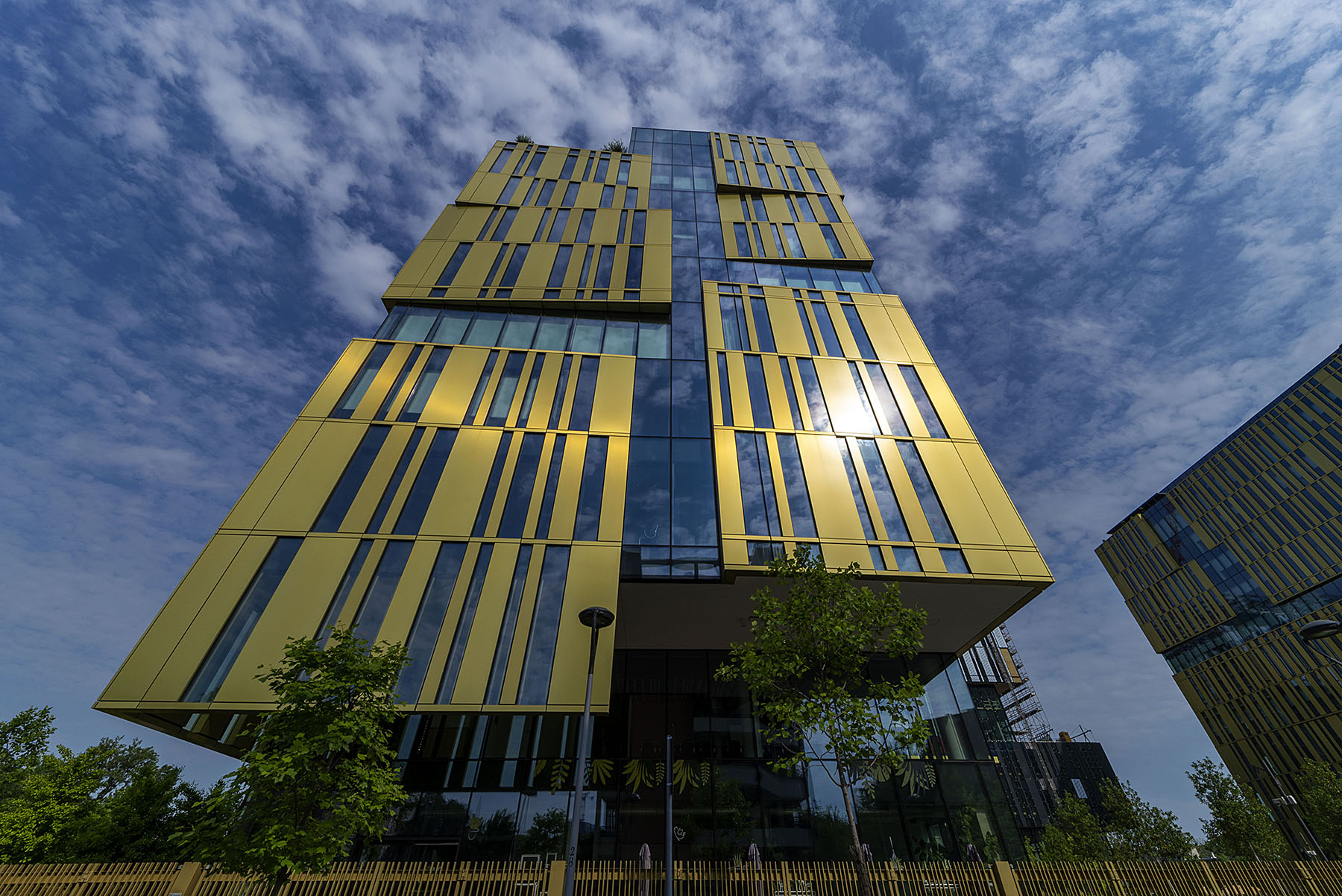 Un cielo significativo ben contrasta con il giallo del palazzo.