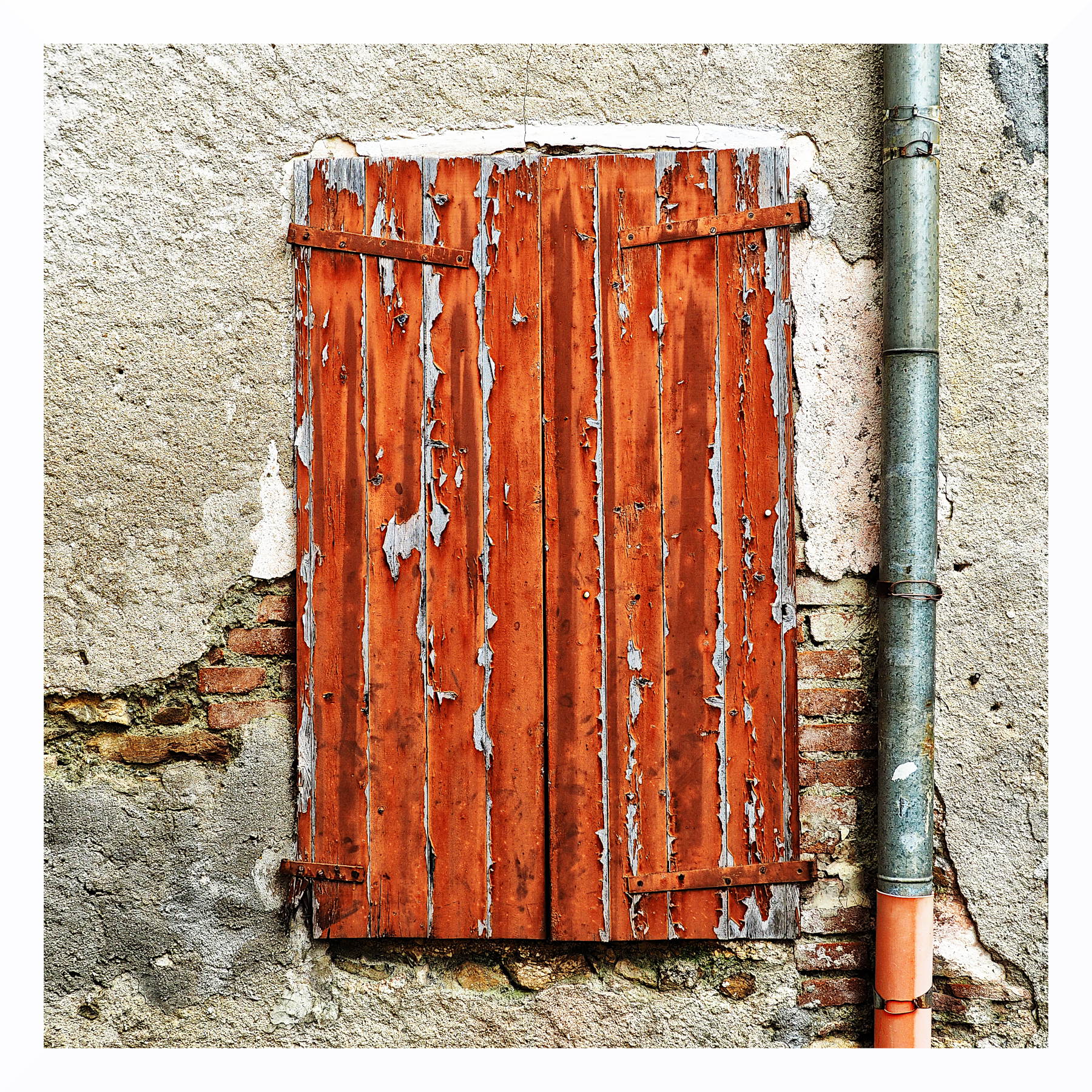 Muri e infissi scrostati hanno sempre il loro fascino, qui accresciuto dai richiami cromatici
