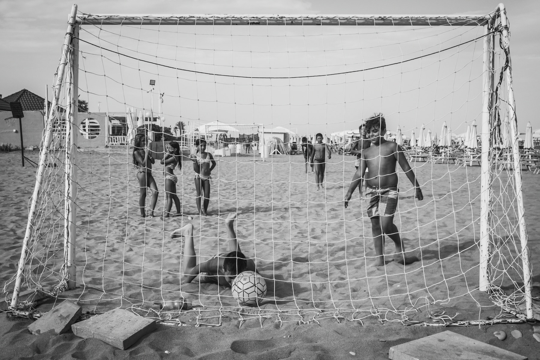 La porta 'calcistica' è inquadrata a filo dei margini. Verrebbe voglia di un po' più di spazio, ma in realtà questo permette invece di osservare la scena come da più dentro. Ecco allora i giovani attori di spiaggia, spontanei, un po' casuali, fortemente autentici. Un bianco e nero sommesso per una fotografia di valore! Ciao, Francesco _________________ Fotocamere Olympus OMD e PEN, Panasonic G3. Software GIMP