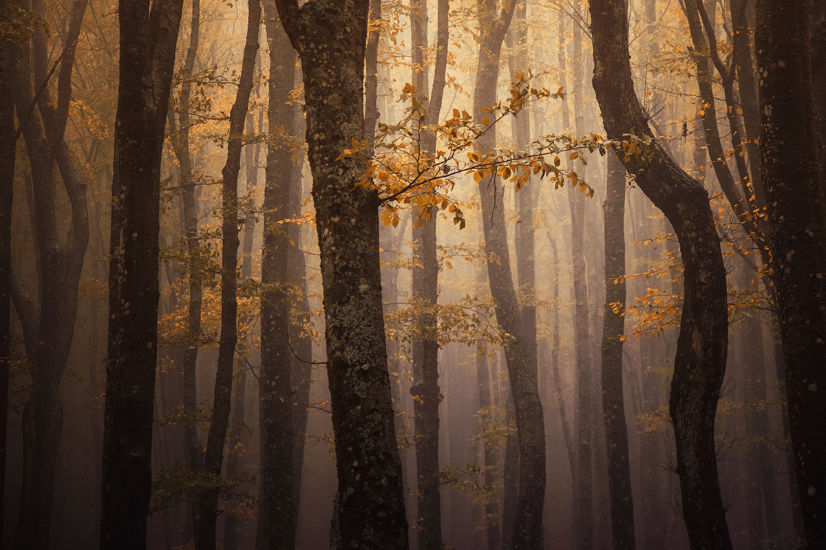 Il fascino dell'autunno, luci tenui, colori caldi e nebbiolina da fiaba.