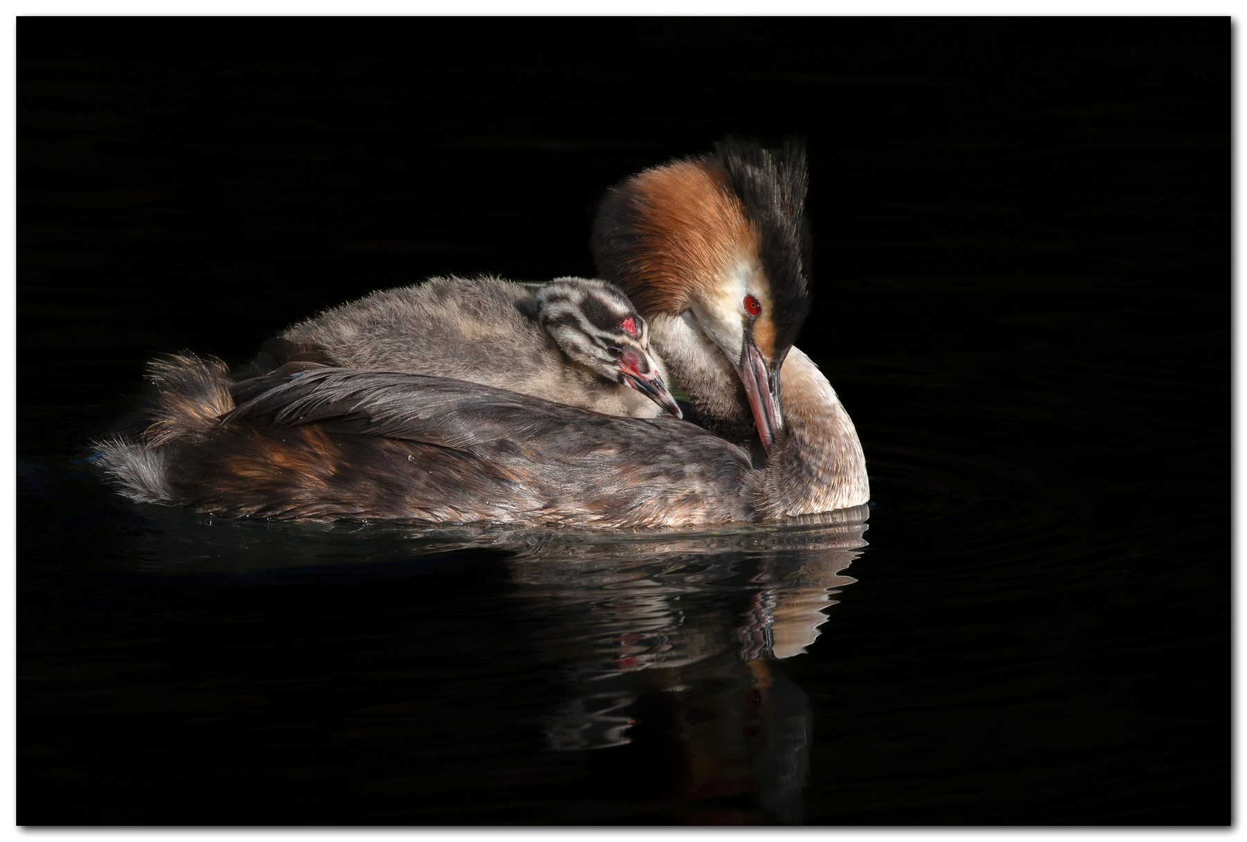 Ciao Marco, quella che vedi sul capo a forma di cuore non è altro che la crestina , ce l'hanno tutti i piccolini di svasso.