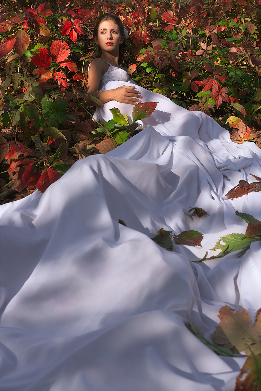 Molto bello lo stacco cromatico tra il vestito candido e i colori caldi delle foglie autunnali. Il raggio che le illumina il viso è il top!!! _________________ Giuseppe Zizzi |