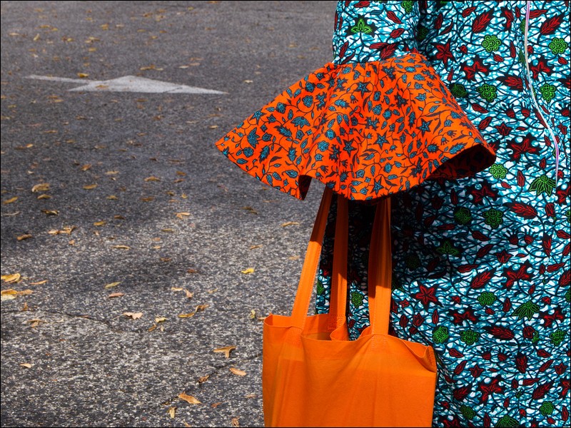 Foglie a terra e come motivo sul vestito. La vedrei in Street.