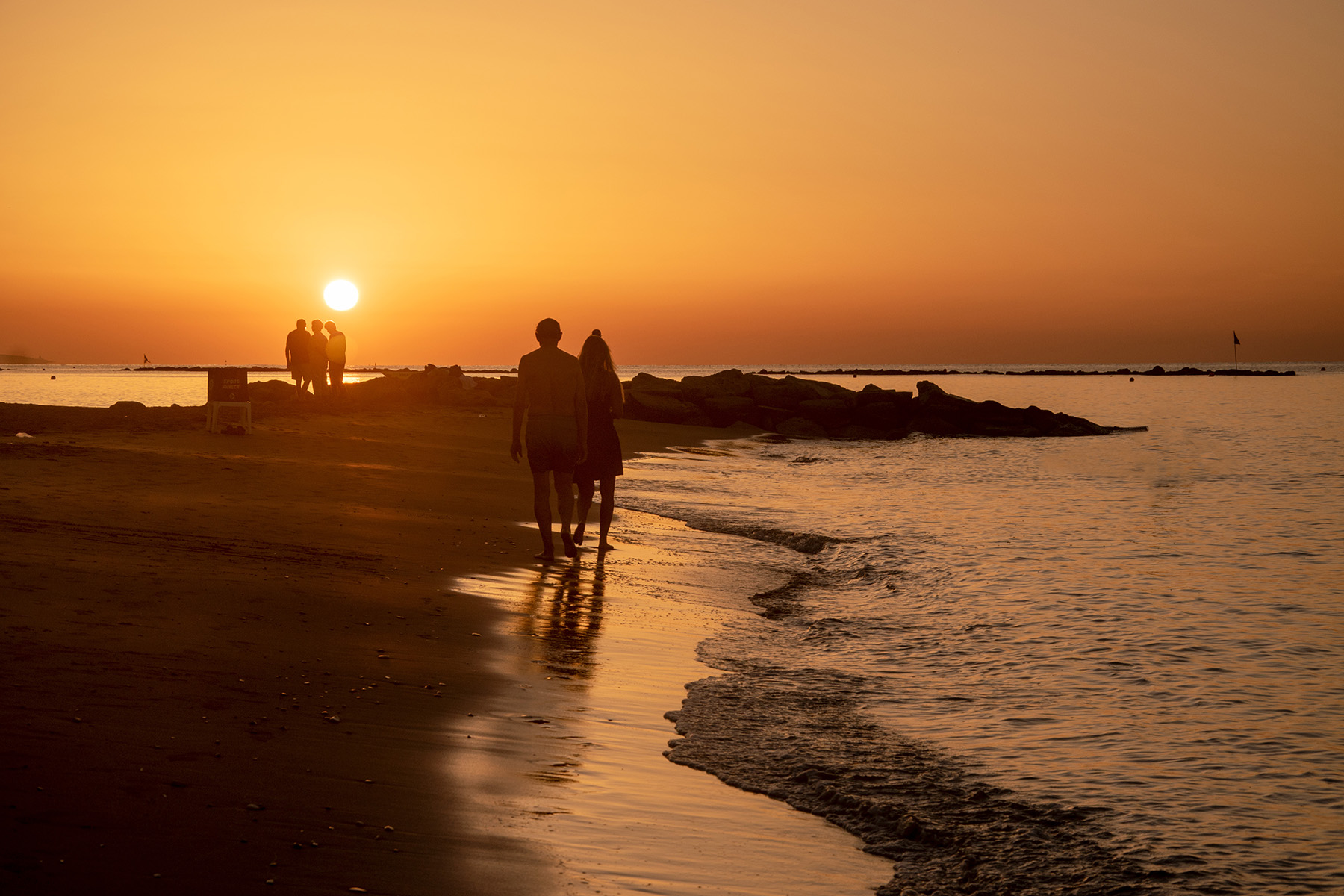 romantica passeggiata alla luce del tramonto, bel controluce ben composto