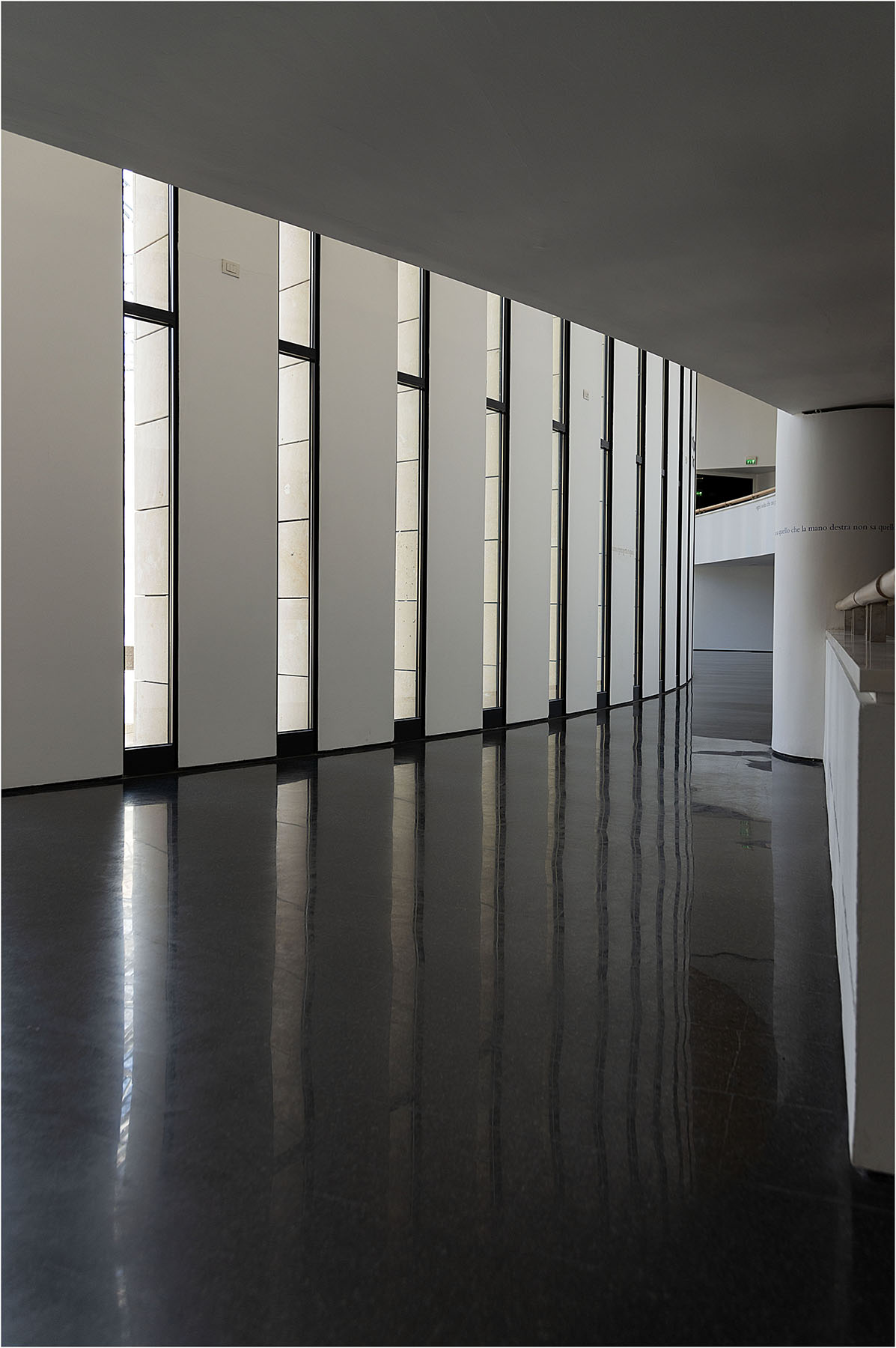 Elegante il ritmo ripetitivo dei pannelli e delle finestre; ipnotico il gioco armonico dei riflessi.