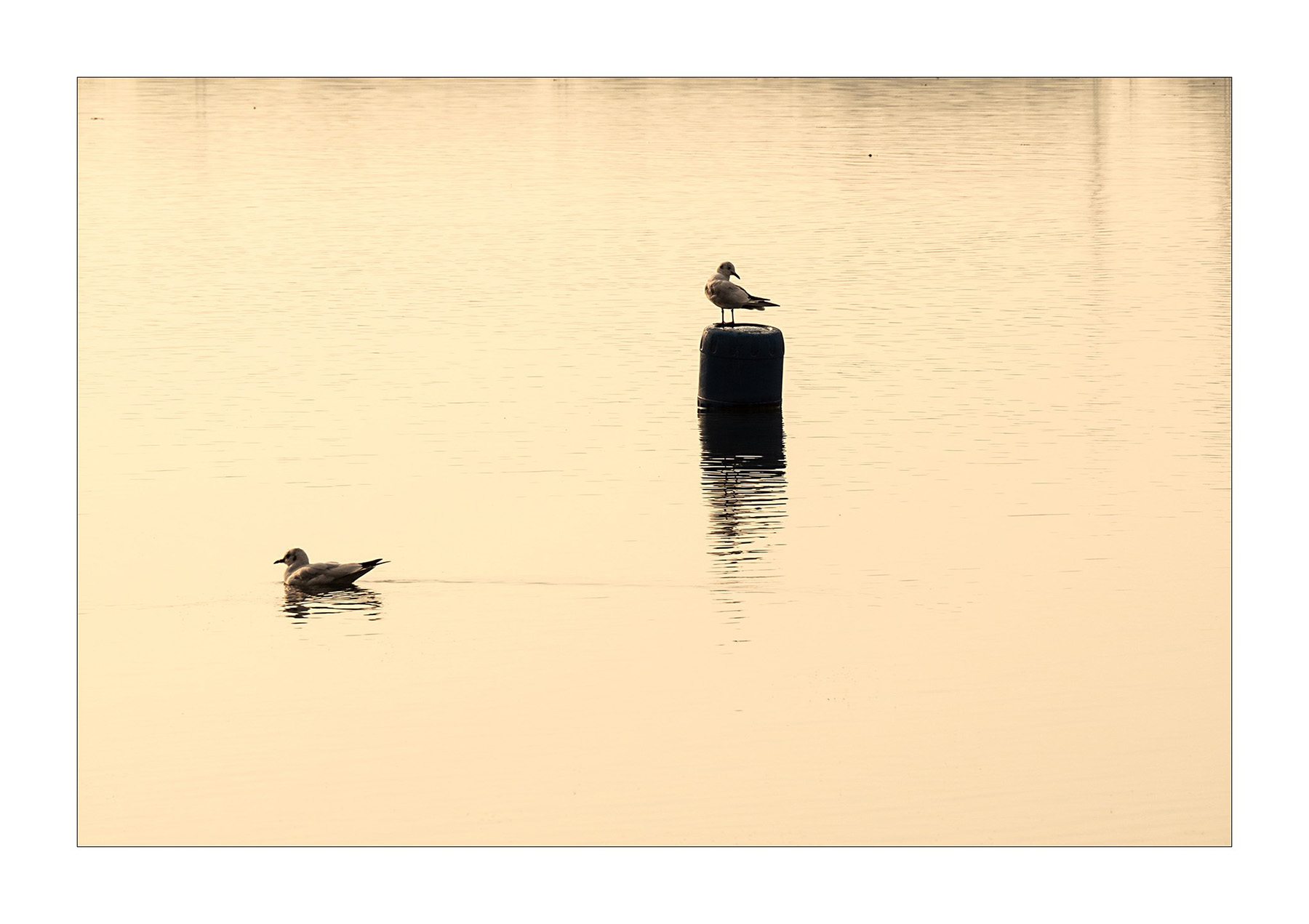 Semplice e bella immagine, anche divertente nella posa dei due uccellini che sembrano essere nella situazione "con te non parlo più..."