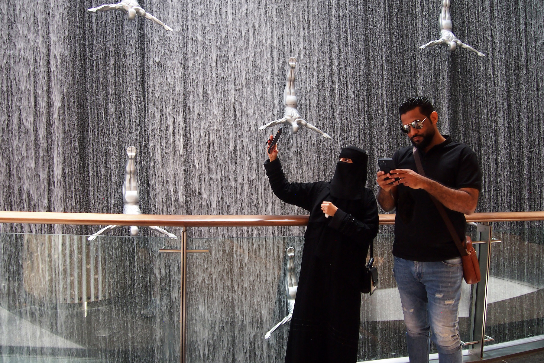 Mi piace l'interazione tra la parte dinamica: la cascata con i tuffatori e le persone con il cellulare.