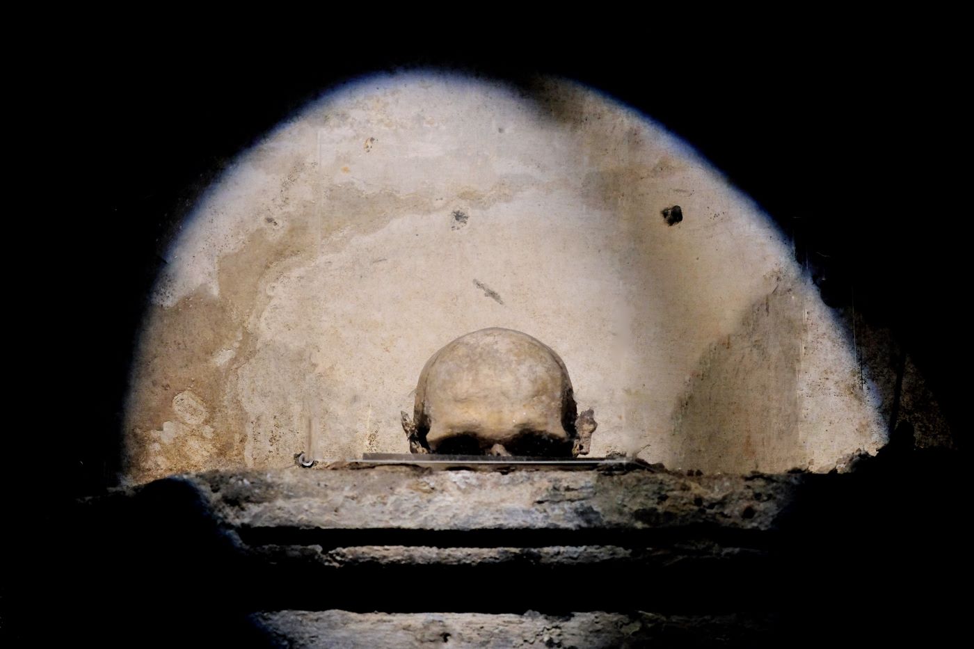 Indubbiamente un tantino lugubre, ma quanto descrivi della tua impressione mi sembra esatto; oggetto di culto sembra "ascoltare" le richieste dei devoti che chiedono grazie.
