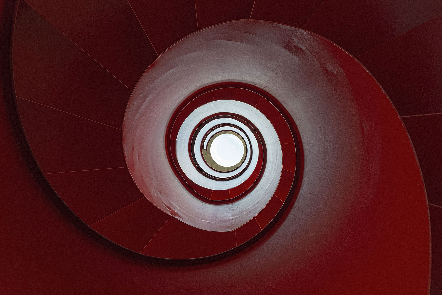 Che dire una struttura architettonica e una ripresa che offrono all'osservatore una vista a spirale ipnotica. Il rosso poi dona una marcia in più. Una gestione ottimale della luce e dell'esposizione fotografica che permettono di ben leggere le parti più e meno in ombra del fotogramma con bell'equilibrio.
