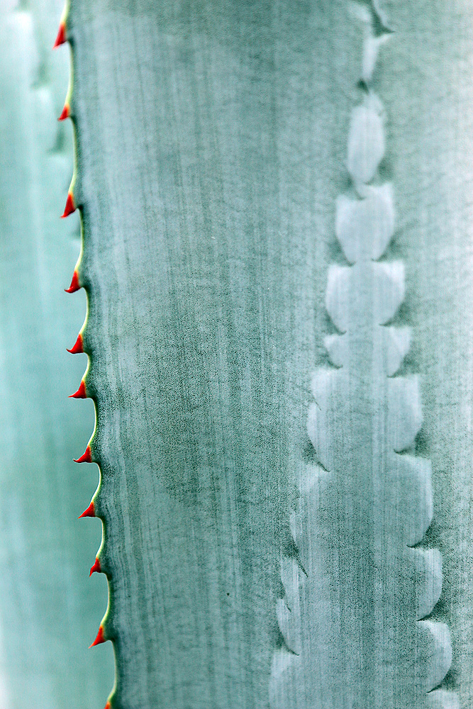 Il punto di forza dello scatto il gioco tra le spine e il rilievo e il contrasto tra il verde della foglia e le spine rosse.