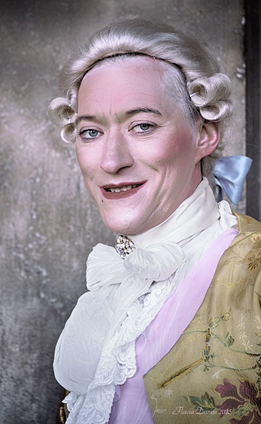 Uno scatto pittorico con una alto dettaglio del vestito e del volto.