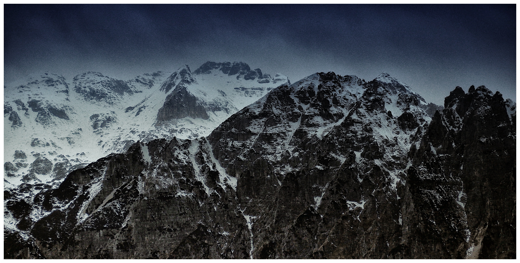 Questo scatto non mi convince, l'ambientazione montana certo ha il suo fascino ma l'immagine è sottoesposta, il cielo mi sembra poco naturale e si nota una grana piuttosto marcata che arriva dall'editing.