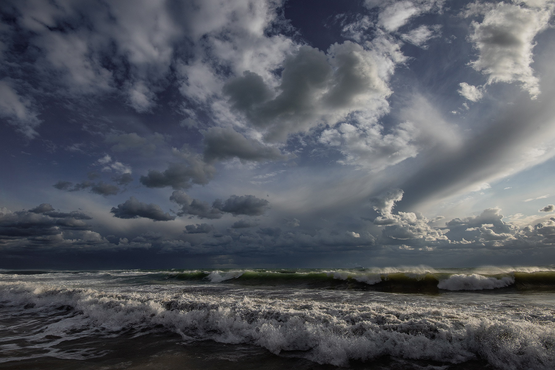 Un cielo drammatico ma anche dinamico che ben si combina con la potenza delle onde.