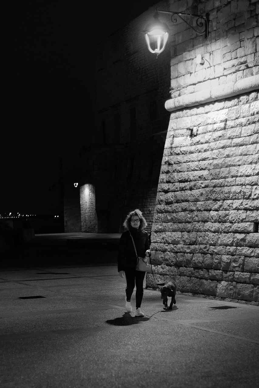 La signora è perfettamente in luce ed i dettagli delle mura sono più che buoni, fondamentale nell'economia dello scatto il lampione in lontananza.