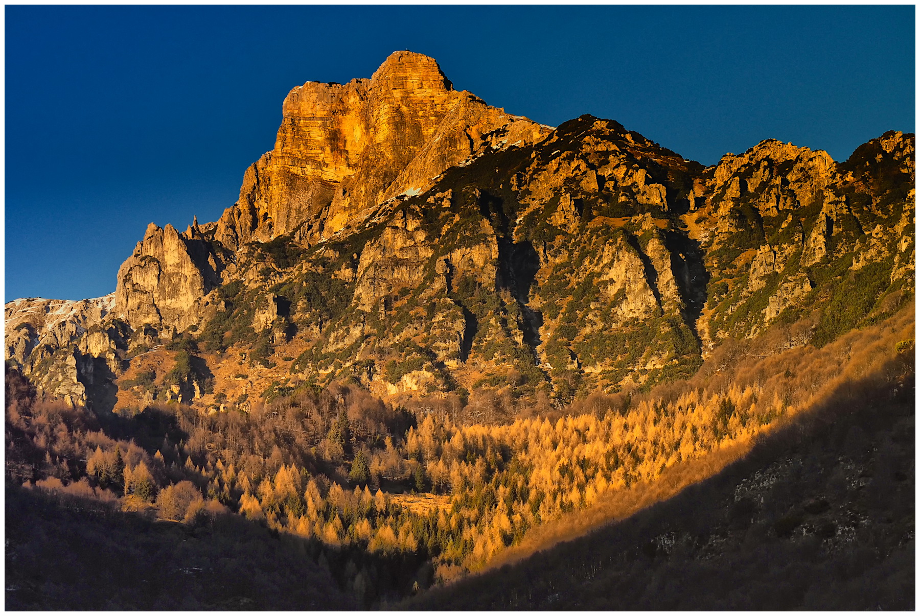 Lo sperone roccioso del 'Soglio dell'incudine', gruppo del Monte Pasubio, visto dal valico veneto-trentino del Pian delle Fugazze. 1 Gennaio 2025 _________________ Fotocamere Olympus OMD e PEN, Panasonic G3. Software GIMP