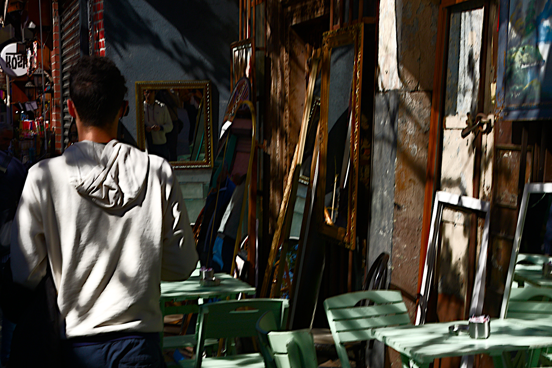 Salve Fabio, in effetti c'è una certa sensazione di horror vacui in questa scena. Detto ciò, il primo dato che salta inesorabilmente agli occhi è che la foto è mossa! A volte il mosso, anche se non intenzionale, può assumere connotati positivi che chiamiamo creativi. In questo caso però francamente non mi pare... La parte sinistra della foto ha discrete potenzialità grazie al riflesso del ragazzo sullo specchio. Direi che una inquadratura verticale che tagliasse tutta la parte a destra a mio avviso renderebbe più immediata e godibile la scena.