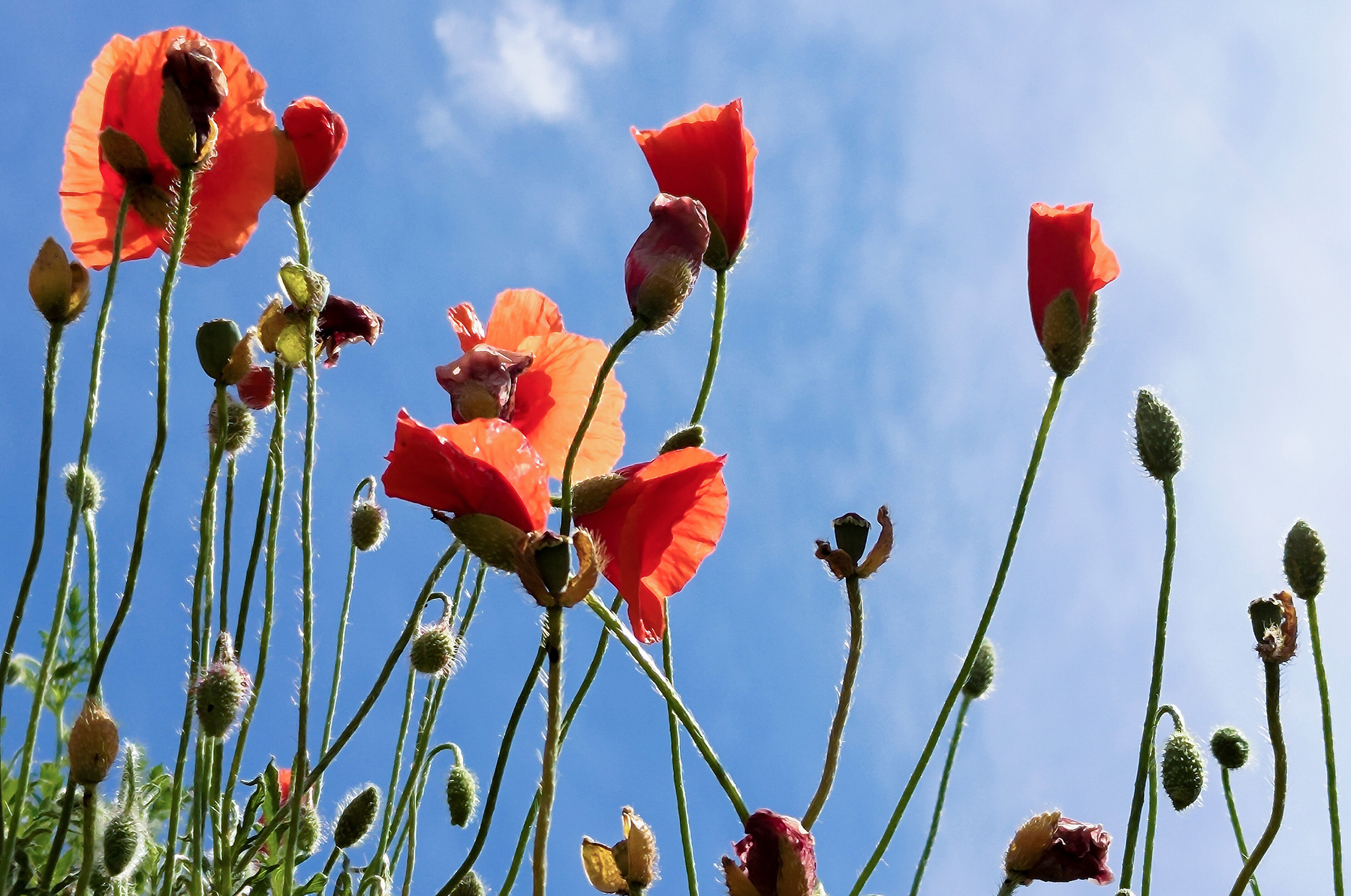 Ovvero papaveri, senza papere, ma ripresi da sotto in su col cellulare.
