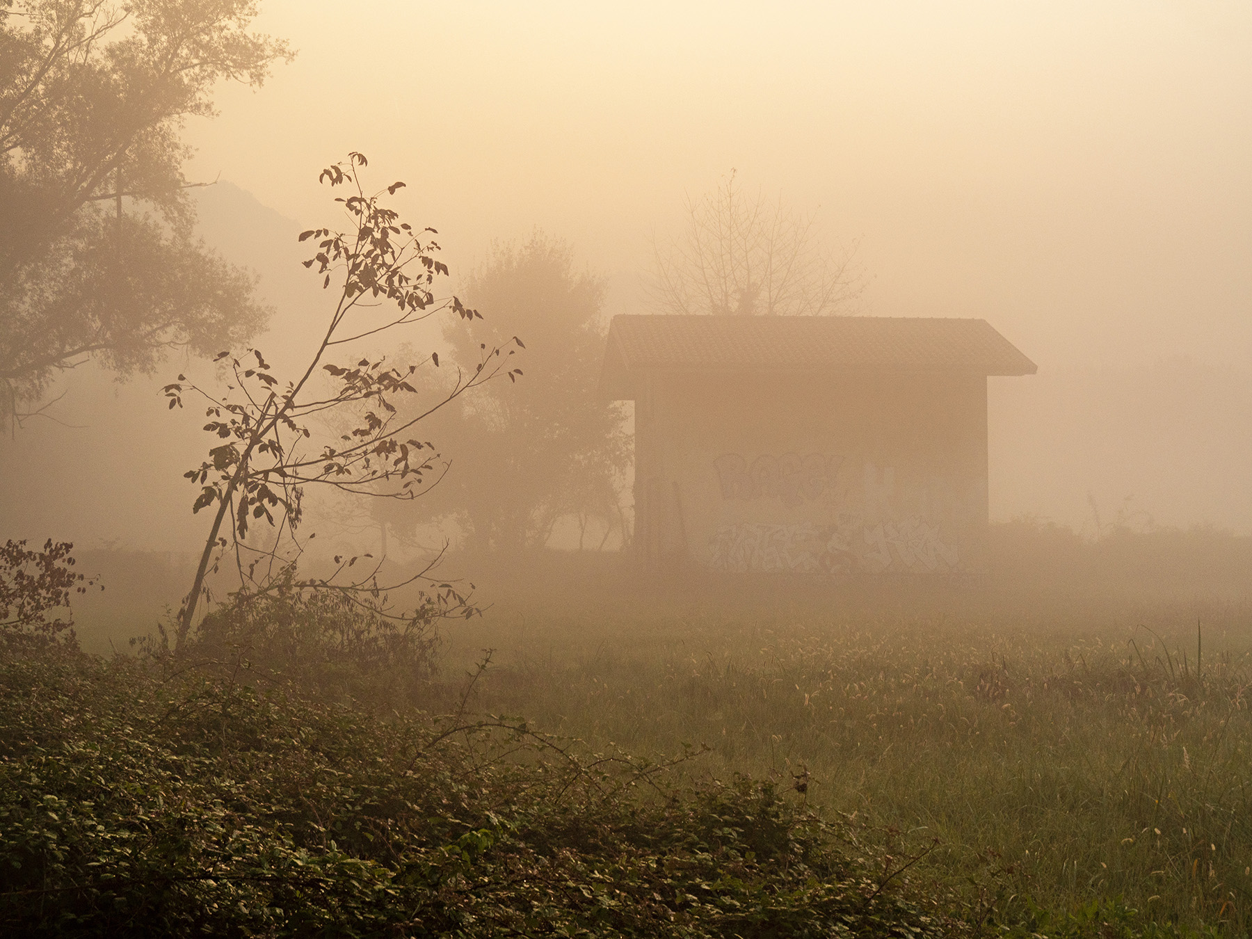 Sono molto indeciso su quell’arbusto in primo piano: senza il fotogramma sarebbe più pulito, ma la sua presenza crea un elemento di inquietudine… come se un grosso insetto volesse ghermire la casa…