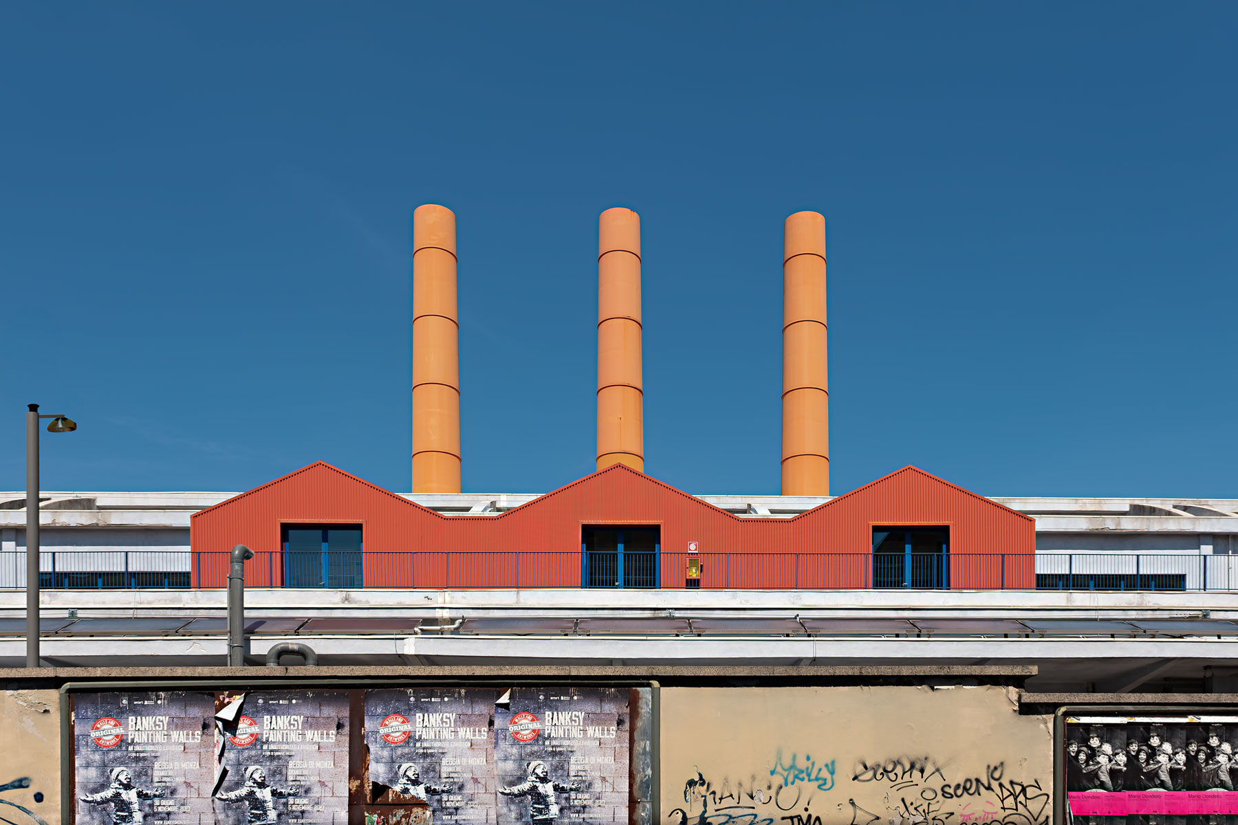 una componente dinamica quasi pittorica La presenza di graffiti scarabocchiati accanto ai manifesti aggiunge uno strato di spontaneità che si scontra con la geometria ordinata e i colori vivaci della struttura sovrastante.