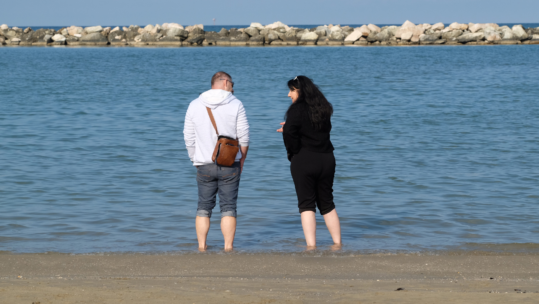 Il frangiflutti distrae dai soggetti che invece staccano benissimo sul mare.