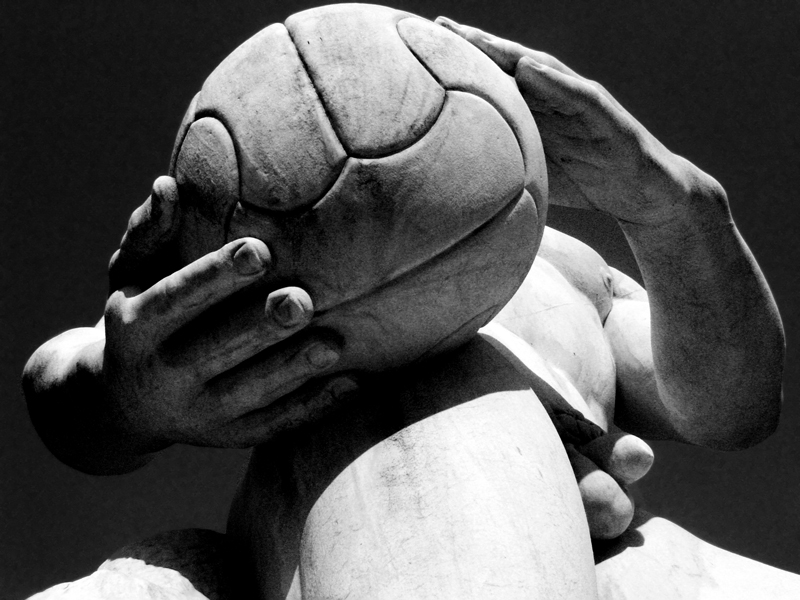 Bella, bel punto di ripresa, composizione e b/n. Un appunto: il taglio per me è un po' troppo stretto, il pallone sfiora quasi il bordo, un briciolo d'aria in più sarebbe stato meglio.