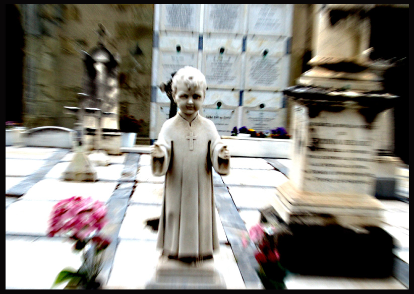 foto decisamente inquietante! Molto cinematofrafica come immagine...di quei film sul diavolo e la religione! Wink bello anche l'effetto di movimento che credo tu abbia creato giocando con lo zoom...da il senso di movimento della statua di corsa verso l'osservatore e aumenta l'inquietudine...