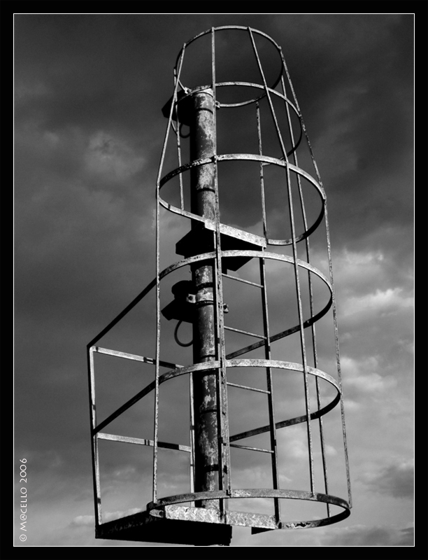 un bel b/n, una luce (credo) abbastanza radente che illumina molto bene la gabbia, su un cielo scuro piuttosto drammatico ed efficace.